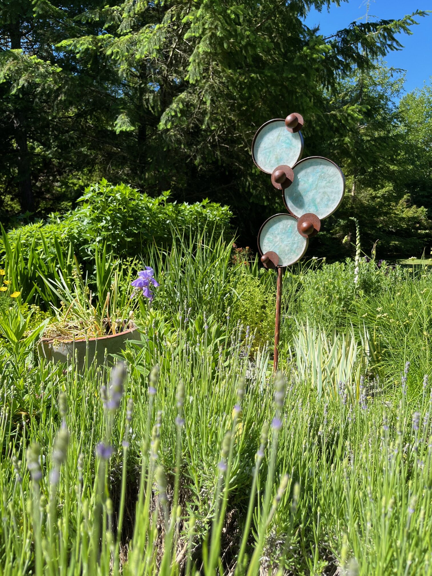 It was in 2016 when an introduction to welding changed her course of direction; steel became her choice medium, and her art took on a life of its own. She would go on to add the practice of fused glass to her portfolio, repurposing broken shards into ethereal, light-catching treasures.